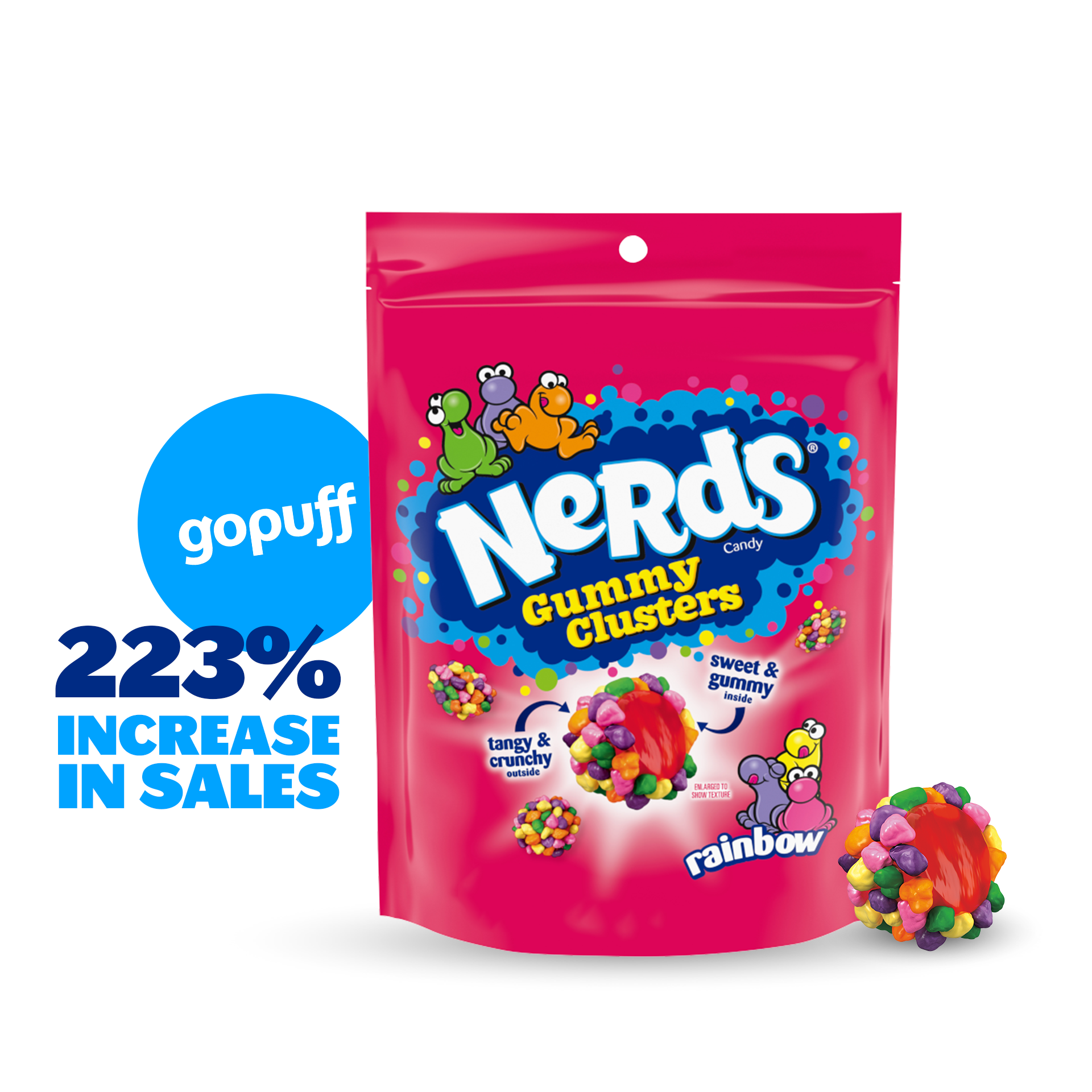 Within an hour of our ad airing, NERDS Gummy Clusters sales increased by a massive 223% on GoPuff.